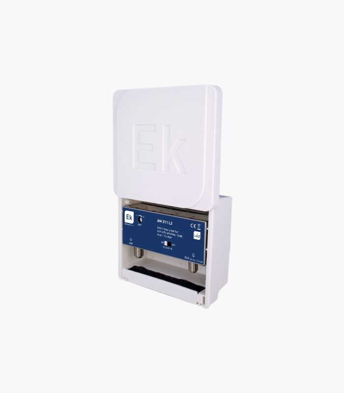 Amplificador de mástil 1 entrada: UHF (470-694MHz). G: 35dB. Nivel de salida (DIN 45004B): 110dBμV. Alimentación: 24Vdc. Con paso de corriente DC en entrada UHF. Filtro 5G alto rechazo