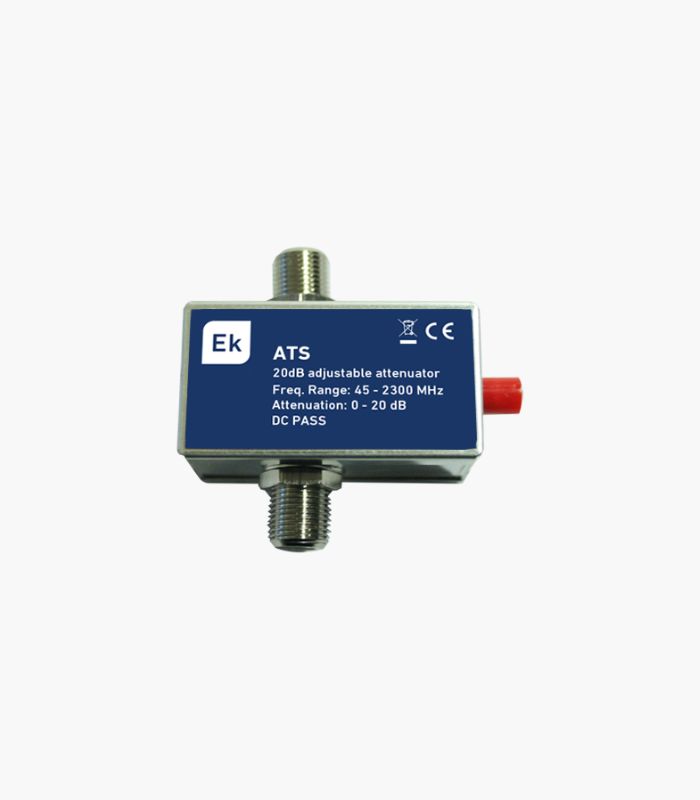 Atenuador variable 0-20dB conectores F 45-2300 MHz. Paso de corriente.