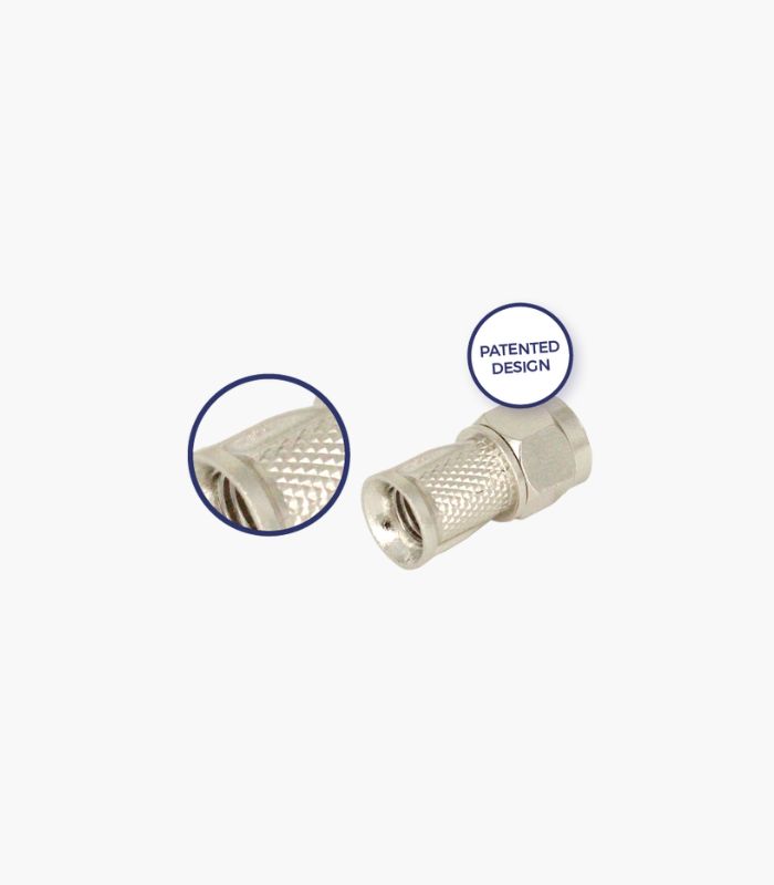 Conector F macho roscado con aletas y ring para cable 6,6-7,3mm.