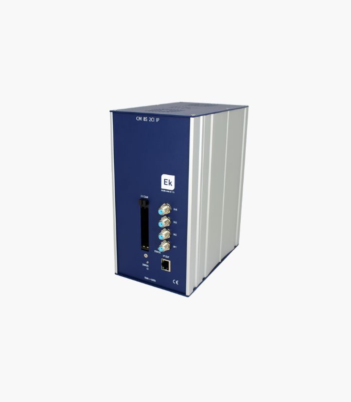 CM 8S 2CI-IP= Transmodulador octo 4 entradas – 8 sintonizadores DVB S/ S2/S2X , con doble lector Common Interface (2 x CI). 13/18V, 22KHz, DiSEqC, Unicable (SATCR-DCSS). Multistream / BISS compatible. Hasta 64 SPTS/MPTS STREAMS IP de salida. Programación desde PC conectado a la fuente de alimentación. Control remoto integrado desde la fuente de alimentación FA 524 Key