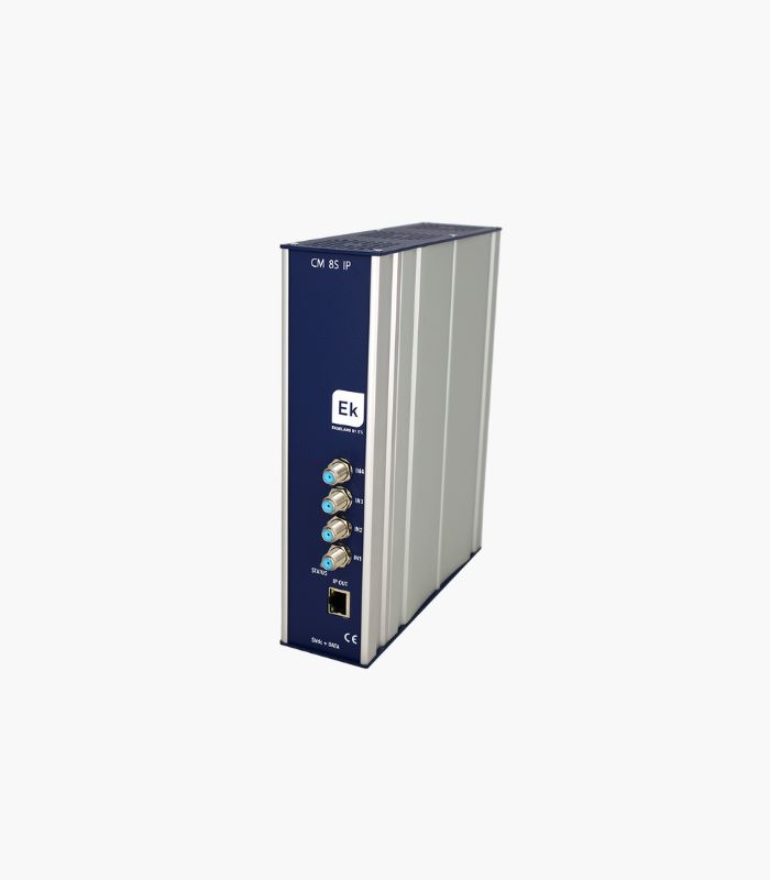 CM 8S-IP= Transmodulador 4 entradas – 8 sintonizadores DVB S/S2/S2X, 13/18V, 22KHz, DiSEqC, Unicable (SATCR- DCSS). Multistream / BISS compatible. Hasta 64 SPTS/ MPTS STREAMS IP de salida. Programación desde PC conectado a la fuente de alimentación. Control remoto integrado desde la fuente de alimentación FA 524 Key