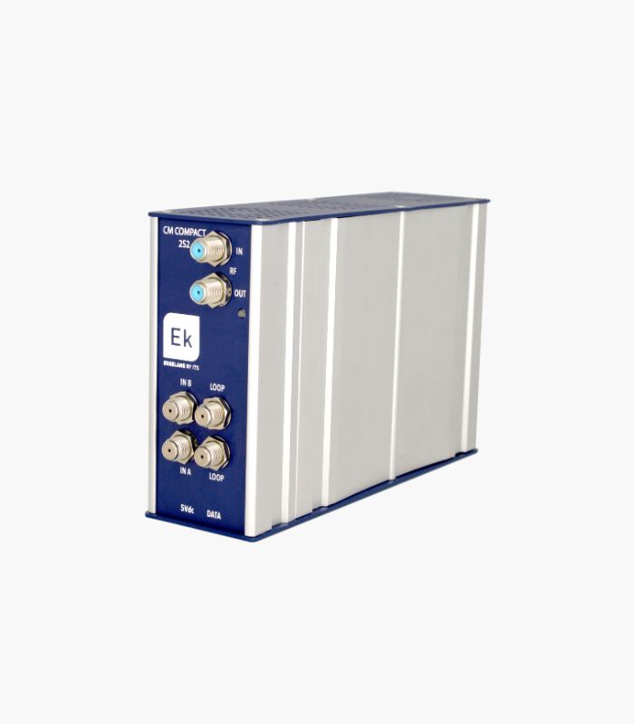 CM COMPACT 2S2= Transmodulador 2 entradas (2 sintonizadores) DVB-S2 + loop. Salida COFDM-QAM. Nivel de salida: 95dBμV. MER >35dB. Remultiplexación inteligente de servicios. 2 canales de salida en RF (flexibles). 13/18V, 22KHz y DiSEqC. Programación via PC. Fuente de alimentación incluida